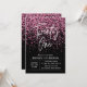 Invitación Purpurina rosado caliente esparcido negro cumpleañ
