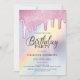Invitación Purpurina rosado gotea el cumpleaños holográfico a