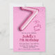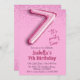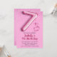 Invitación Purpurina rosado lindo globo no.7 niñita 7 cumplea