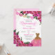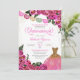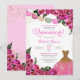 Invitación quinceanera en rosa rosa caliente con acentos dorados y banner de papel picado y vestido de purpurina. Consulte la tienda para ver esta invitación con chicas de diferentes colores de cabello y tonos de piel.