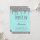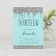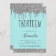 El Chica del Purpurina de goteo de huevos azules del huevo de Aqua Robin de plata y Verde azulado se convierte en una 13.ª Trece Invitación de fiesta de cumpleaños . Este es el lugar perfecto para los niños 13 - cumple 13 Chicas invitando al cumpleaños para una moderna fiesta de cumpleaños del Purpurina Sparkle Girly. Póngase en contacto con el diseñador para que coincida con los elementos personalizados.