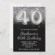 Invitación Purpurina Sparkly Silver Globo negro 40 cumpleaños