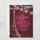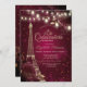 Invitación Purpurina Torre Eiffel, Rosas de Borgoña Quinceañe