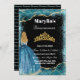 Invitación Purpurina Turquesa Princesa Quinceañera Ballgown