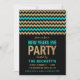 Invitación Purpurina Turquesa y Oro Chevron Fiesta de Año Nue
