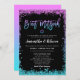 Invitaciones del purpurina B'not Mitzvah, de color violeta y turquesa moderno. ¡Ideal para un evento de moda! Los diseños son ilustraciones/gráficos impresos planos - NO PURPURINA REAL.