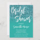 Diseño de bloques de color de purpurina verde azulado y turquesa para la ducha nupcial. El tipo de letra con letras a mano "Bridal Shower" es una caligrafía contemporánea encantadora en blanco. Puede personalizar de todo el texto de este diseño. El gráfico purpurina es arte digital que imprime como una foto en tu invitación moderna.