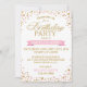 Los purpurinas rosados y dorados brillan por su moderno diseño de tarjetas de invitación para fiestas de cumpleaños.
