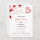 Este chica con temática de mariposa, con una invitación a la ducha para bebés, cuenta con flores de cerezo color agua rosa bonito y una mariposa con un fondo blanco. Un lema en un guión caligráfico que dice: "Una mariposa está en camino". Con un código qr escaneable en el reverso del registro de regalos.