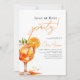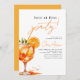 Brindis para amar y divertirnos con nuestro amor en la primera invitación a la ducha de Naranja Spritz. Esta invitación, con colores naranjas vibrantes y detalles de estilo gráfico inspirados en el espíritu del espíritu del espíritu, prepara el escenario para una celebración luminosa y alegre. Perfecto para honrar a la futura novia, invita a los invitados a tomar, celebrar y compartir la alegría de la ocasión. Combinando un diseño moderno y fresco con un toque de fantasía, esta invitación es ideal para una ducha de novia única y memorable.