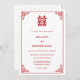 This elegant Chinese wedding invitation features a red double happiness symbol and a red Chinese fram. Bride and groom names in an elegant modern font. Chinese wedding invitation or tea ceremony invitation. With a scannable qr code and a photo at the backside.