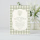 Sage green gingham bridal shower invitation featuring a soft floral design and a built in QR code. Designed so guests can easily view registry details, RSVP information, or event links while maintaining a charming, modern aesthetic. Perfect for bridal showers, garden parties, brunch celebrations, and elegant pre wedding events. Editable text and QR destination. Clean print-ready layout.