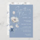 Planee la ducha nupcial perfecta con esta impresionante, Algo Azul antes de la invitación. Con hermosas flores de flores silvestres y un estilo boho clásico, esta invitación exuda elegancia y seguro impresiona a sus huéspedes. Agrega los detalles de tu fiesta para completar la invitación y empieza a emocionarte por tu próxima celebración. En la parte trasera hay un patrón floral de bonito con un cómodo QR para dirigir a los clientes a su registro de bodas.