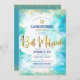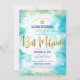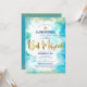 Invitación QR Código Bat Mitzvah Turquoise Relieve metalizado