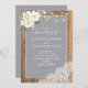 Invitación QR Código Gris Rústico Wood Lace Script Boda