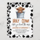 Invitación de primer cumpleaños con el código QR Invitación de cumpleaños para un niño con una linda vaca de las tierras altas en un cubo y un patrón de impresión de vaca negra alrededor del borde de la invitación. Esta invitación de cumpleaños de vacas de las tierras altas se puede usar para cualquier edad y contiene un código QR reemplazable en la parte posterior.