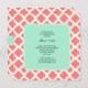 Invitación Quatrefoil rosa de coral y ducha de novias verde d