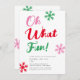 Esta invitación festiva para fiestas incluye un guión moderno de caligrafía que dice "¡Qué Diversión!" en rosa, rojo y verde con la coordinación de copos de nieve. Los detalles de la invitación están en una letra moderna. Personalizar este diseño añadiendo una foto y/o texto adicional al fondo. El aspecto es divertido, moderno y festivo.