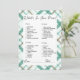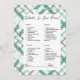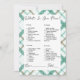 Presentamos el cautivador juego "What's in Your Purse", una deliciosa adición a tu ducha de novias que promete risas y conexión interminables. En un marco de blanco puro, adornado con un bonito borde de manto verde y blanco, este juego desprende un encanto atemporal y una sofisticación moderna, lo que crea el escenario para una celebración verdaderamente inolvidable. Las palabras "What's in Your Purse" se presentan de forma elegante en un alfabeto de escritura moderno negro, con lo que se invita a los huéspedes a emprender un emocionante viaje de exploración. A medida que tus seres queridos hurguen en sus bolsas, descubrirán una variedad de artículos, cada uno con un valor de entre 5 y 20 puntos. Este giro inventivo en un juego clásico añade un elemento de competencia amistosa y disfrute compartido, fomentando una atmósfera animada llena de camaradería y alegría. Los objetos del juego, meticulosamente dispuestos en un sencillo tipo de letra negro, aseguran que los participantes de todas las edades puedan participar sin esfuerzo en las festividades. Las etiquetas "name" y "total", adornadas con una fuente cursiva negra de bonito y líneas que las acompañan, le dan un toque de elegancia al diseño, haciendo eco del espíritu refinado de su ducha de novias. El juego "What's in Your Purse", con un marco blanco inmaculado y adornado con un bonito borde verde y blanco, se convierte en un punto focal visual que se completa perfectamente con la decoración de la ducha de novias. Más allá de su valor de entretenimiento, este juego se convierte en un catalizador para conversaciones deliciosas, ya que los huéspedes comparten historias alentadoras y descubrimientos que inducen a las risas. Eleva tu ducha de novia con el cautivador juego "What's in Your Purse", donde el espíritu del descubrimiento converge con la alegría de la unión. Este juego transforma tu celebración en una experiencia inmersiva que rebosa de conexión, risas y momentos atesorados. Prepárate para una ducha de novias que irradia encanto y celebración, con un telón de fondo de sofisticación moderna y el atractivo acogedor de un borde de manto verde y blanco contra un impecable lienzo blanco.