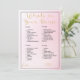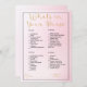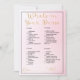 Entra en un mundo de encantamiento y risa con el cautivador juego "What's in Your Purse" - una adición perfecta a tu celebración de la ducha de novias. Este juego, rodeado de un cautivador telón de fondo rosa oscuro, promete una tarde llena de camaradería, sorpresas y recuerdos alegres. El llamativo guion dorado de "What's in Your Purse" invita a los clientes a participar en una encantadora aventura con sus bolsos de mano. A medida que descubren tesoros ocultos, cada artículo revela su propio valor de punto, que oscila entre 5 y 20 puntos. Este giro único en un juego clásico aporta un elemento de competencia amistosa y diversión compartida a su evento. Con un enfoque en claridad y simplicidad, los elementos de juego se presentan en un tipo de letra de bloque negro limpio, asegurando que todos puedan participar con facilidad. Las etiquetas "name" y "total", junto con sus líneas de acompañamiento, están adornadas con un elegante tipo de letra cursiva dorada, añadiendo un aire de sofisticación al diseño general. El juego What's in Your Purse, enmarcado por un clásico borde negro, desprende una elegancia intemporal que realza la belleza de la decoración de la ducha de novia. Más allá del juego en sí, esta experiencia anima a los invitados a compartir historias sobre sus descubrimientos únicos. Eleva tu ducha de novia con el juego "What's in Your Purse", donde el espíritu de aventura se encuentra con la alegría de la amistad. Este juego es más que sólo entretenimiento; es una oportunidad para crear recuerdos preciados, celebrar lazos y añadir un toque de elegancia a tu celebración. Prepárate para una ducha llena de risas, conexión y sorpresas reconfortantes.