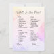 Eleva tu ducha nupcial con el cautivador juego "What's in Your Purse", una atractiva adición que promete risas, conexión y un toque de elegancia moderna. En un entorno de vibrantes tonos rosa, violeta y naranja adornado con brillantes flecos de oro y encantadores elementos purpurinas decorativos, este juego prepara el escenario para una celebración inolvidable. La moda del alfabeto negro moderno de "What's in Your Purse" extiende una invitación a los participantes, invitándolos a participar en un delicioso viaje de descubrimiento. A medida que los huéspedes hurgan en sus bolsas, descubrirán una serie de artículos, cada uno de los cuales tiene un valor de punto único de entre 5 y 20 puntos. Este giro innovador en un juego clásico infunde un elemento de competencia amistosa y diversión compartida en tu evento. Diseñados para la claridad y la facilidad de uso, los objetos de juego se presentan en un tipo de letra de bloque negro depurado, lo que garantiza que los clientes de todas las edades puedan participar sin esfuerzo. Las etiquetas "nombre" y "total", realzadas con un elegante tipo de letra cursiva negro y líneas de acompañamiento, introducen un toque de sofisticación en el diseño general. El juego What's in Your Purse, con sus modernos tonos rosa, violeta y naranja, se complementa con unos brillantes dorados y unos cautivadores elementos purpurinas decorativos, se convierte en una deslumbrante pieza central que se completa perfectamente con la decoración de las duchas de novias. Más allá de su valor de entretenimiento, este juego fomenta las conexiones ya que los huéspedes comparten historias sobre sus hallazgos únicos. Eleva tu ducha nupcial con el juego "What's in Your Purse", donde el espíritu del descubrimiento se armoniza con la alegría de la unión. Este juego transforma tu celebración en una experiencia de memoria, llena de risas, conexiones y sorpresas conmovedoras. Prepárese para una ducha que irradia encanto y celebración, donde se fortalecen las amistades y se celebran lazos en medio de un telón de fondo de elegancia moderna y de cautivadores tonos rosa, morado y naranja adornados con brillantes acentos.
