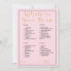 Presentamos el encantador juego "What's in Your Purse", una deliciosa adición a tu ducha de novia que promete risas, conexión y un toque de elegancia. Este juego, con un fondo de color rosa suave, prepara el escenario para un viaje reconfortante mientras los huéspedes exploran el contenido de sus bolsos de mano, revelan tesoros ocultos y crean preciados recuerdos. Las palabras "What's in Your Purse" se reproducen con gusto en una letra de escritura dorada que exude sofisticación y encanto. A medida que los huéspedes recorran sus maletas, descubrirán una mezcla de artículos a los que se ha asignado un valor de punto único, que oscila entre 5 y 20 puntos. Este giro lúdico en una tradicional cacería de barrenderos seguramente va a despertar risas y camaradería mientras los participantes cuentan sus partituras. Los elementos de juego se presentan en un tipo de letra de bloque negro limpio, lo que garantiza claridad y accesibilidad para todos. Las etiquetas "name" y "total", adornadas con una elegante letra cursiva dorada, acompañadas de líneas brillantes, le dan un toque exquisito al diseño general. Este detalle capta la esencia de la ocasión, mezclando el glamour con el juego. Enmarcado con un interminable borde negro, "What's in Your Purse" ostenta una estética clásica que complementa cualquier tema de ducha de novia. Más allá de la diversión del juego, esta experiencia fomenta los lazos, ya que los huéspedes comparten historias sobre los objetos únicos que han desenterrado. Eleva tu ducha de novia con el juego "What's in Your Purse", en el que las sorpresas alegres concuerdan con el encanto de la conexión. Este juego es más que simple entretenimiento; es una oportunidad para hacer recuerdos, celebrar amistades y celebrar la belleza en los pequeños tesoros de la vida.