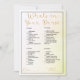 Añada un toque vibrante y lúdico a sus festividades de la ducha de novias con el encantador juego "What's in Your Purse". Envuelto en un cautivador telón de fondo oscuro amarillo, este juego promete una tarde llena de risas, camaradería y deliciosas sorpresas. El llamativo alfabeto dorado de "What's in Your Purse" invita a los clientes a emprender un viaje alegre a través de sus bolsos de mano. A medida que descubren una serie de tesoros ocultos, cada artículo tiene su propio valor de punto, que oscila entre 5 y 20 puntos. Esta variación creativa en un juego clásico infunde un elemento de competencia amistosa y diversión compartida en su celebración. Diseñados para la claridad y accesibilidad, los elementos de juego se presentan en un elegante tipo de letra de bloque negro, lo que facilita a los participantes identificar y desproteger elementos. Las etiquetas "name" y "total", junto con las líneas que las acompañan, están decoradas con una exquisita fuente dorada cursiva, añadiendo un toque de elegancia al diseño general. Enmarcado con un interminable borde negro, el juego "What's in Your Purse" se convierte en una elegante pieza central que complementa cualquier decoración de ducha de novia. Más allá de su valor de entretenimiento, este juego despierta conexiones entre los clientes al intercambiar historias sobre sus hallazgos únicos. Eleva tu ducha de novia con el juego "What's in Your Purse", donde el espíritu del descubrimiento se encuentra con la alegría de la amistad. Este juego es una oportunidad para crear recuerdos duraderos, celebrar lazos y añadir un toque de color y emoción a su celebración. Prepárate para un evento lleno de risas, conexiones y sorpresas conmovedoras.