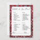 Eleva la emoción en tu ducha de novia con nuestro encantador juego, "What's in Your Purse" (Qué hay en tu bolso). Diseñada para traer risas y camaradería a la celebración, esta atractiva actividad anima a los invitados a hurgar en sus bolsas y a contar los puntos de los artículos que encuentran dentro. Entre 5 y 20 puntos, estos artículos prometen deliciosas sorpresas y momentos de alegría compartida. La estética del juego es una armoniosa mezcla de elegancia y sofisticación, con un fondo blanco inmaculado adornado con un cautivador borde victoriano rojo y plateado. Las palabras "What's in Your Purse" se exhiben con gusto en un estilo de letra de escritura moderno y negro, lo que añade un toque de encanto a la ocasión. Cada elemento de juego se presenta en un simple tipo de letra de bloque negro, asegurando una clara visibilidad y facilidad de uso para los participantes de todas las edades. A medida que los jugadores comprueban sus hallazgos, las palabras "nombre" y "total", junto con líneas elegantes, se muestran cuidadosamente en un tipo de letra cursiva negro bonito, añadiendo un toque elegante a la presentación general. El sorprendente contraste entre el blanco inmaculado y el interminable borde rojo y plateado victoriano evoca una sofisticación intemporal, haciendo de "What's in Your Purse" una adición de buen gusto a la decoración de la ducha de novias. Mientras los clientes se enfrascan en una competencia amistosa, la risa llena el aire y se forman lazos, creando una atmósfera de unión muy apreciada. Este juego no es solamente un pasatiempo —es una oportunidad para crear recuerdos duraderos y compartir la alegría de la novia mientras se embarca en su viaje al matrimonio. Con "What's in Your Purse", seguro que hará de su ducha de novia una experiencia inolvidable para todos.
