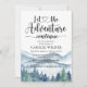 Que la aventura continúe con la invitación a la ducha de bebé acuarela con el paisaje silvestre de bosque y montañas con tipografía de escritura caligráfica con corazón en el medio.