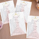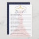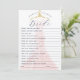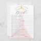 Divertido y elegante ¿qué tan bien conoces la tarjeta de juego de ducha de novia? Juego divertido para jugar en tu fiesta de ducha de novia. Elegante vestido rosa brillante de color rosa con percha dorada de época expuesta en el fondo. Obra de arte original y diseño por Moodthology Papery.