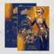 Invitación Queen Birthday Gold Orange Navy Blue Dress Party