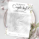 Si estás buscando un divertido juego de ducha de novias, ¡no busque más y venga al "Who Knows The Couple Best Game"! Este juego es la elección perfecta para cualquier futura novia y seguramente será un éxito entre los invitados.