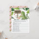 Pon a prueba el conocimiento de tus invitados con este divertido juego de baby shower "¿Quién conoce mejor a la futura mamá?". La tarjeta del juego presenta una encantadora escena de acuarela en la parte superior con un bebé dinosaurio que sale del cascarón con un lazo rosa, un dinosaurio adulto amistoso y un patito adorable. Los invitados llenan los espacios en blanco para responder preguntas sobre la futura mamá, y el invitado con más respuestas correctas gana. Esta actividad divertida e interactiva es un rompehielos perfecto y es un complemento maravilloso para el tema de tu fiesta "La niña también puede rugir".