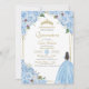 Invitación Quinceanera azul claro Elegante Vestido Rosa Flora