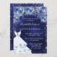 Invitación Quinceanera azul marino vestido floral glamoroso