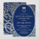 Invitación Quinceañera Azul Real y Princesa Dorada Monograma