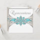 Hermosa invitación de Quinceañera azul turquesa y plata. Este diseño elegante de fiesta de cumpleaños de Quinceañera en marfil y azul turquesa se puede personalizar fácilmente para su fiesta o evento.
