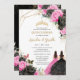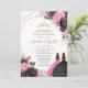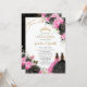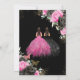 Invitación Quinceañera Black Fuchsia Floral Princess Twins