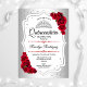 Invitación a la celebración de Quinceanera blanca y plateada. Incluye tipografía de guiones, rosas rojas, tiara y confetti. Diseño elegante con una falsa plata purpurina. Perfecto para una elegante celebración de glam al estilo de la princesa. Personaliza con tus propios detalles. Invitaciones Zazzle impresas o una plantilla imprimible digital de descarga instantánea.