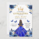 Celebra tu día especial con la invitación de la floral princesa de la mariposa azul azul Quinceañera. Con un impresionante telón de fondo azul real adornado con delicados acentos florales y mariposas encantadoras, este elegante diseño captura la belleza y la gracia de una quinceañera. Perfecto para una celebración de temática princesa, la invitación combina el encanto atemporal con un toque moderno. Invite a sus invitados a unirse a las festividades mágicas, marcando este hito inolvidable con una invitación que refleja la elegancia y sofisticación de su celebración de quinceañera.