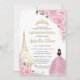 Invitación Quinceañera Cumpleaños Floral Rosa París Eiffel Or