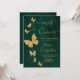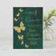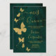 Invitación Quinceanera de la mariposa de oro y verde esmerald