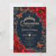 Invitación a la celebración de Quinceanera azul marino, rojo y oro. Características, letra de guión, mariposas doradas, rosas rojas acuarelas y tiara. Perfecto para una elegante celebración de glam al estilo de la princesa. Personaliza con tus propios detalles. Invitaciones Zazzle impresas o una plantilla imprimible digital de descarga instantánea.
