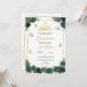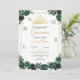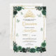 Celebra tus miedos quinceañeros con esta elegante Invitación de la Quinceañera de oro verde esmeralda. Con una corona de oro en la parte superior, vibrantes mariposas verdes y flores esmeraldas con acentos dorados, este bonito diseño enmarcado le aporta un toque real y floral a su día especial. Perfecto para una celebración de quinceañera con temática de princesa. BRT350