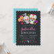 Planee su fiesta de cumpleaños de la quinceañera con el tema del Día de los Muertos con estas encantadoras invitaciones con calaveras de azúcar decoradas festivamente y flores de colores brillantes. Personaliza con tu Día de Muertos los detalles de la quinceañera con letras blancas y rosas en un fondo fuera de negro.