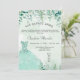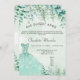 Una invitación de moda para una fiesta de 15 años de Quinceañera, temática forestal encantada. Un fondo de color verde acuático con helechos y eucaliptos, un vestido verde. El nombre está escrito con una escritura de estilo con letras a mano moderna. Personalice y agregue los detalles de su fiesta.