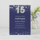 Una invitación moderna, elegante y glamurosa para una fiesta de 15 años en Quinceañera. Un fondo azul marino, decorado con estrellas de imitación plateadas. Personalice y agregue su nombre y detalles del fiesta. El número 15 se escribe con un tipo de letra de estilo globo.