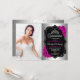 Invitación de fiesta de Quinceanera con tu foto. Incluye tipografía de guion, rosas de fucsia rosados calientes, tiara y confetti. Elegante diseño rosa blanco negro con una falsa plata purpurina. Perfecto para una celebración elegante.