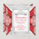 Princesa Quinceañera Fiesta de 15 años. Corona plateada floral blanca y roja regia, con zapatos de tacón alto con brillo. Marco de encaje blanco plateado. Fiesta de mis quince para mujeres o niñas. Invitación formal. Utilice para cualquier invitación de evento. Personalice para cambiar o agregar detalles. Ocasiones fabulosas y elegantes para mujeres, niñas, invitaciones de fiesta para todas las edades, ¡solo personalice a la edad que desee! ¡Asequible, barato pero con clase! Zizzago creó este diseño. POR FAVOR Tenga en cuenta que todas las imágenes NO son diamantes, joyas o lazos reales.