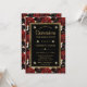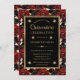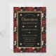 Invitación Quinceanera floral de mármol rojo negro y dorado